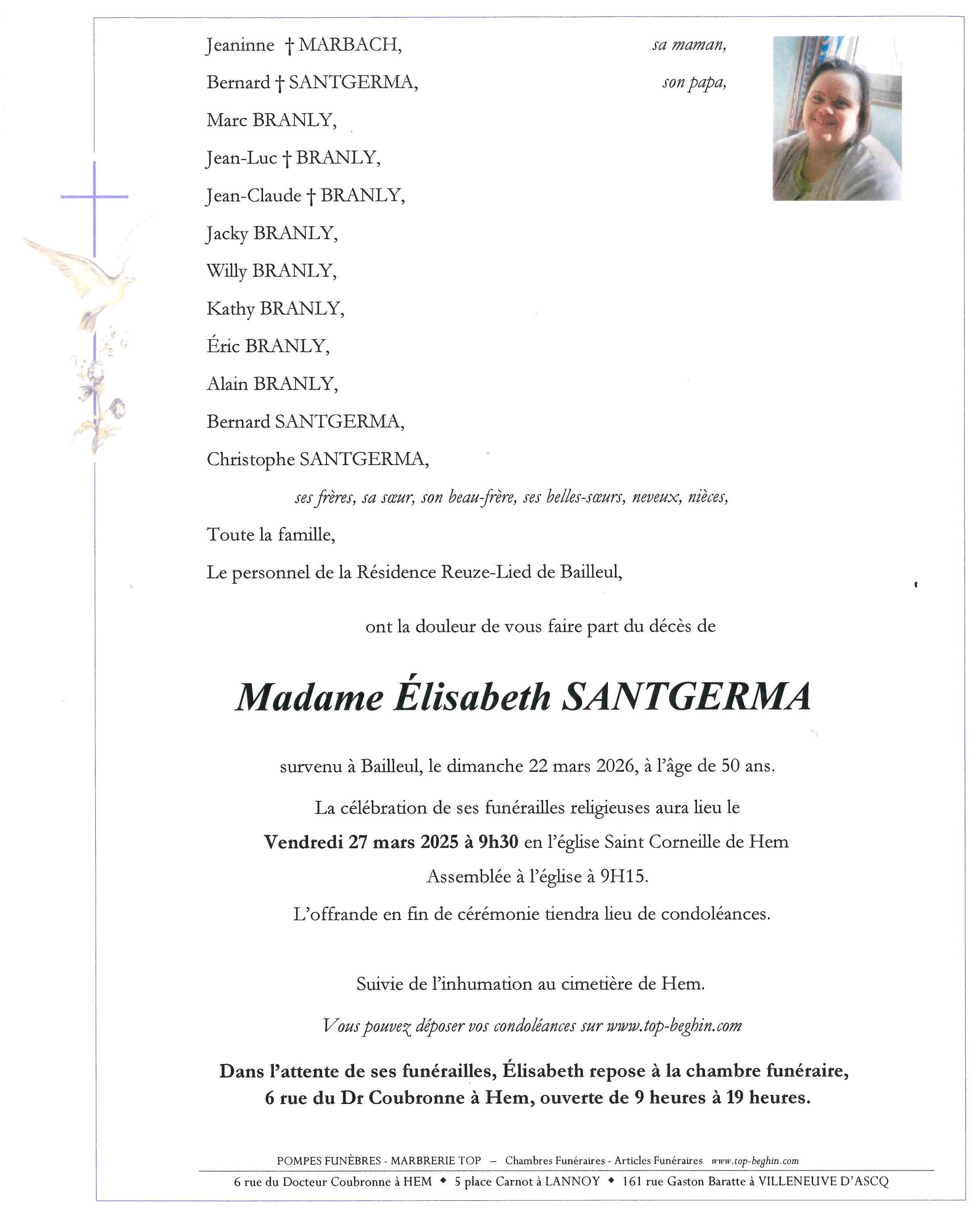 Déroulement des funérailles de Madame Elisabeth SANTGERMA