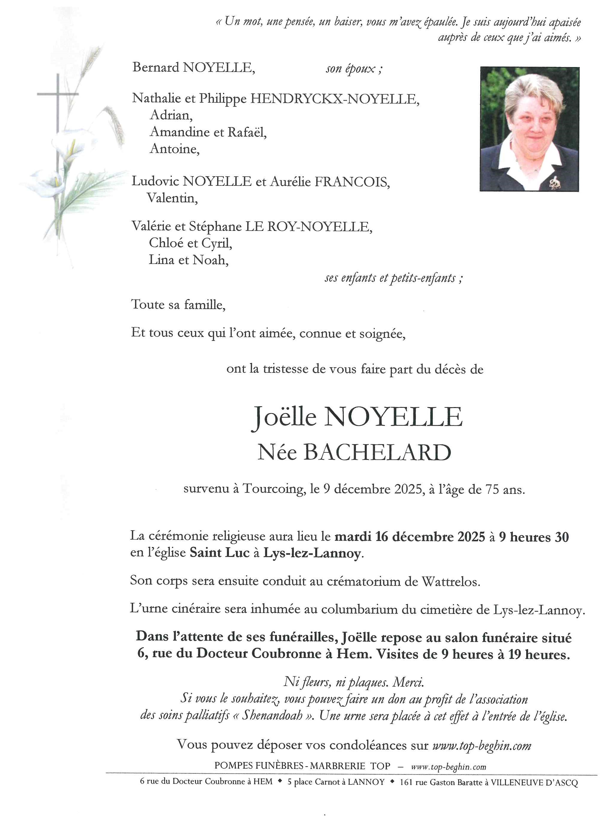 Avis de décès de Madame Joëlle NOYELLE née BACHELARD