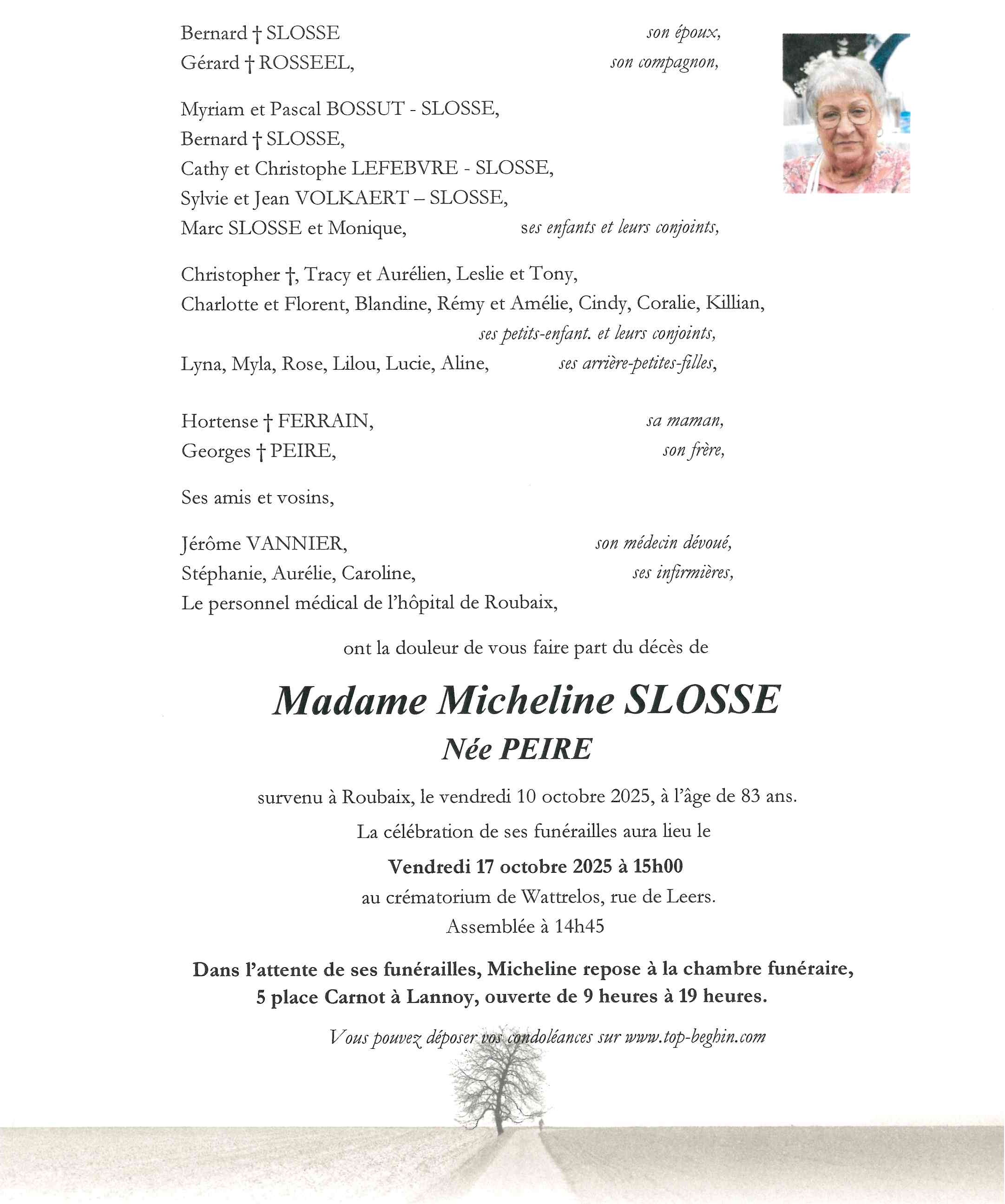 Déroulement des funérailles de Madame Micheline SLOSSE