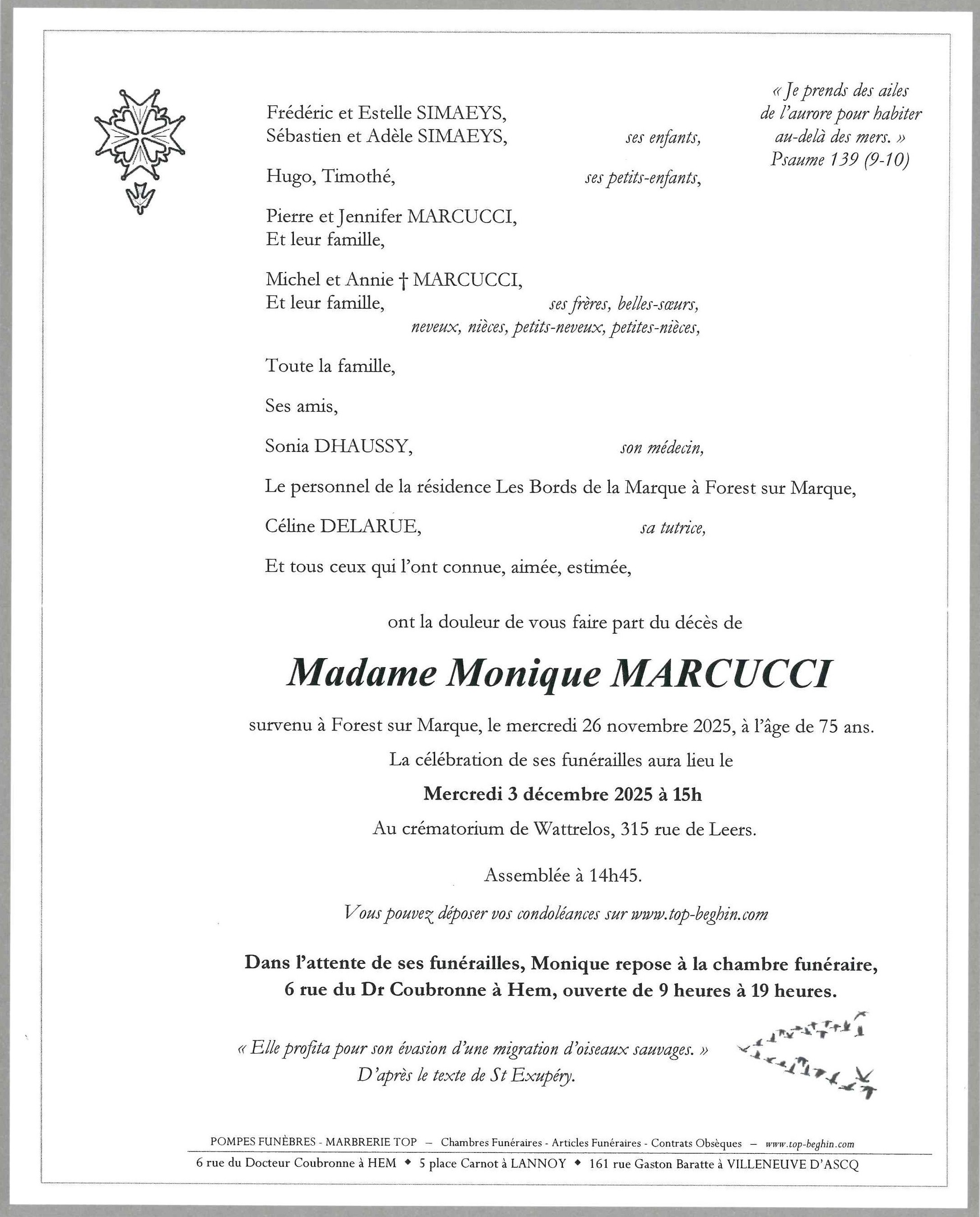 Déroulement des funérailles de Madame Monique MARCUCCI