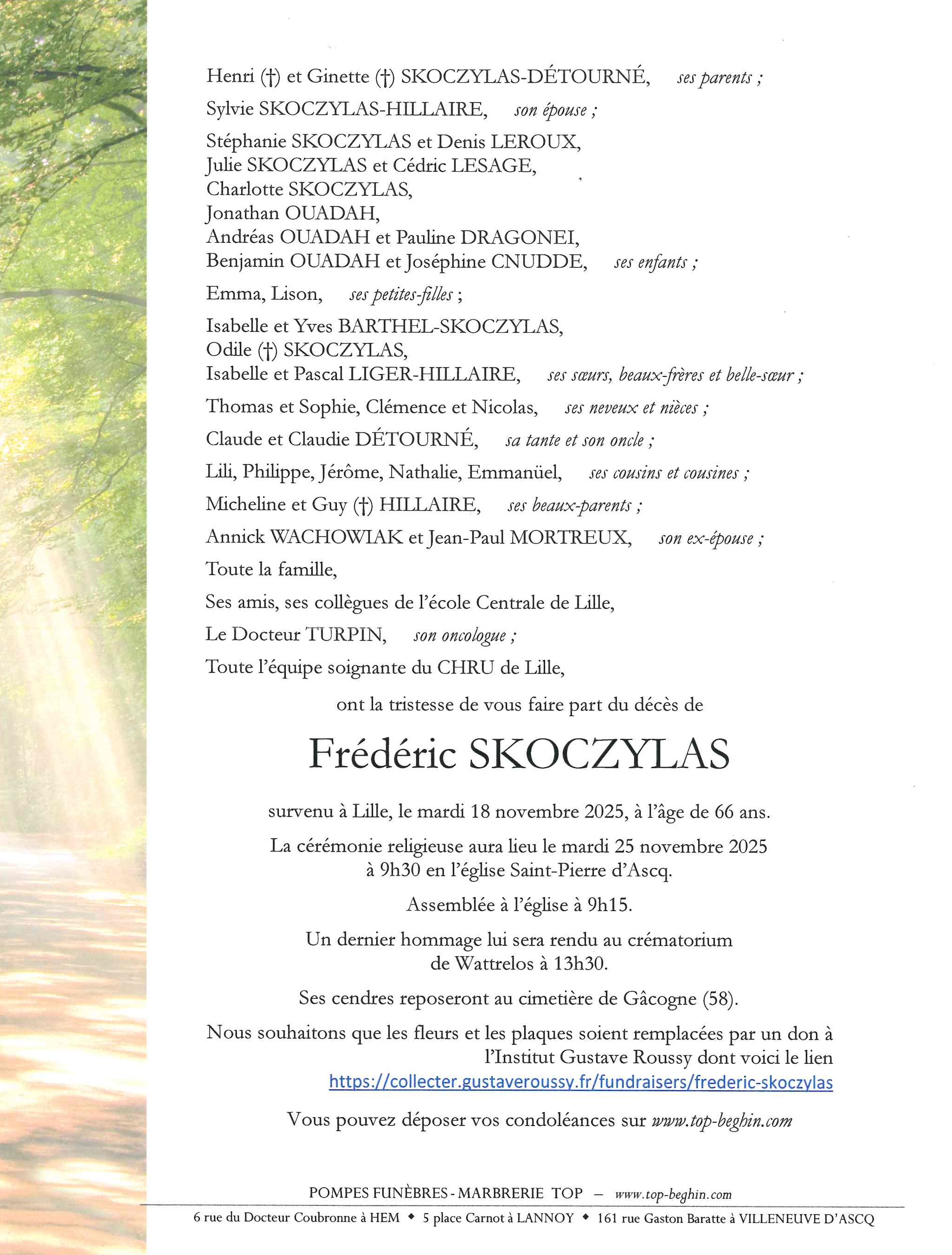 Avis de décès de Monsieur Frédéric SKOCZYLAS