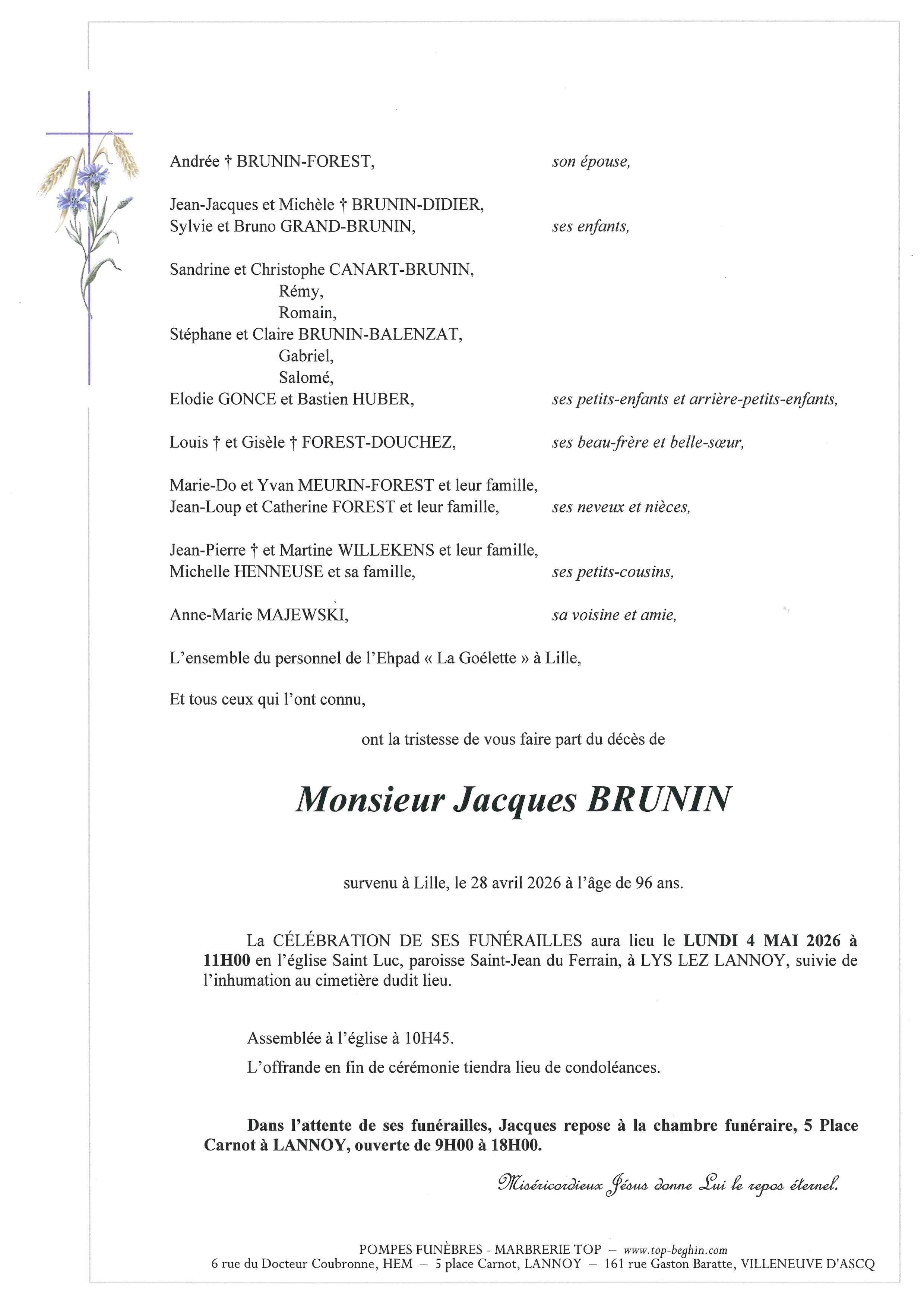 Déroulement des funérailles de Monsieur Jacques BRUNIN