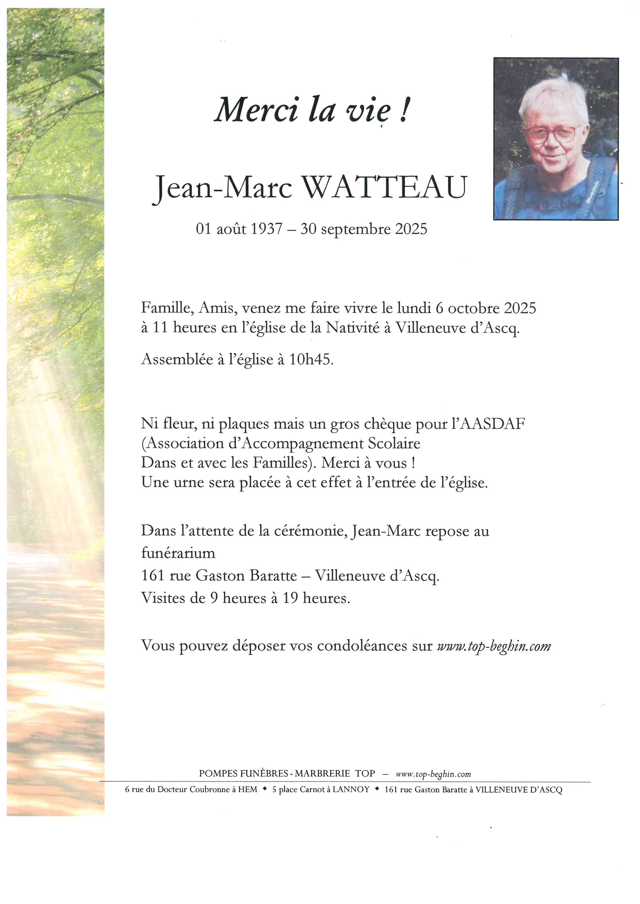 Avis de décès de Monsieur Jean-Marc WATTEAU